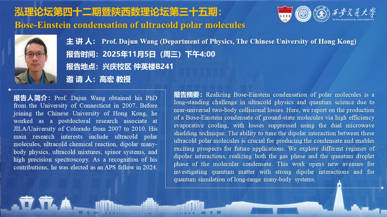 【泓理论坛第四十二期暨陕西数理论坛第三十五期】—— Bose-Einstein condensation of ultracold polar molecules