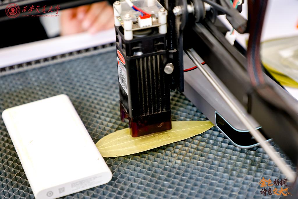 的志愿者们化身科普使者,现场操作激光打标机,为师生们定制专属落叶纪念品。一片普通的梧桐叶,在激光的“雕琢”下,不仅能呈现出师生们喜爱的照片图案,还能精准雕刻上校徽与校训,让每一片落叶都成为独一无二的“交大记忆”。在雕刻过程中,志愿者们耐心讲解激光原理,从光的直线传播到能量的集中释放,用通俗易懂的语言将抽象的物理知识转化为生动的现场演示,吸引了众多师生驻足观看、积极提问,在轻松愉悦的氛围中传播了科学知识。