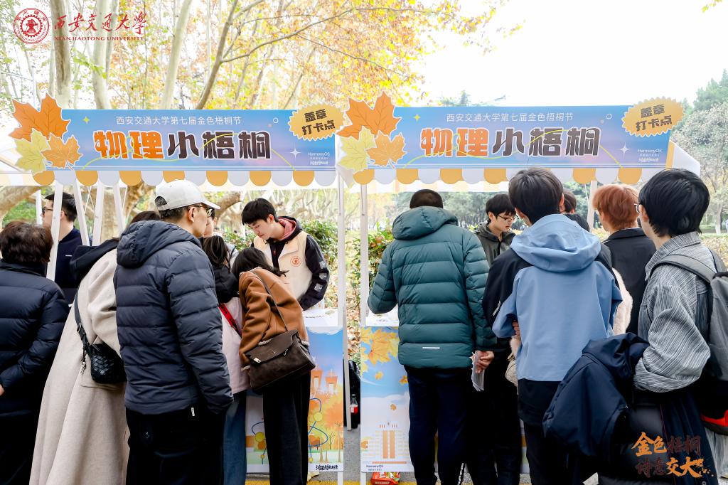 校园迎来了第七届“金色梧桐节”。作为本次梧桐节六大主题打卡点之一,“物理小梧桐”主题打卡点于2025年11月22日至23日精彩亮相,以落叶为媒介,将物理科普与艺术创作巧妙融合,为全校师生呈现了一场兼具知识性与观赏性的科普盛宴,为这场秋日文化盛典增添了独特的科技韵味与人文温度。
